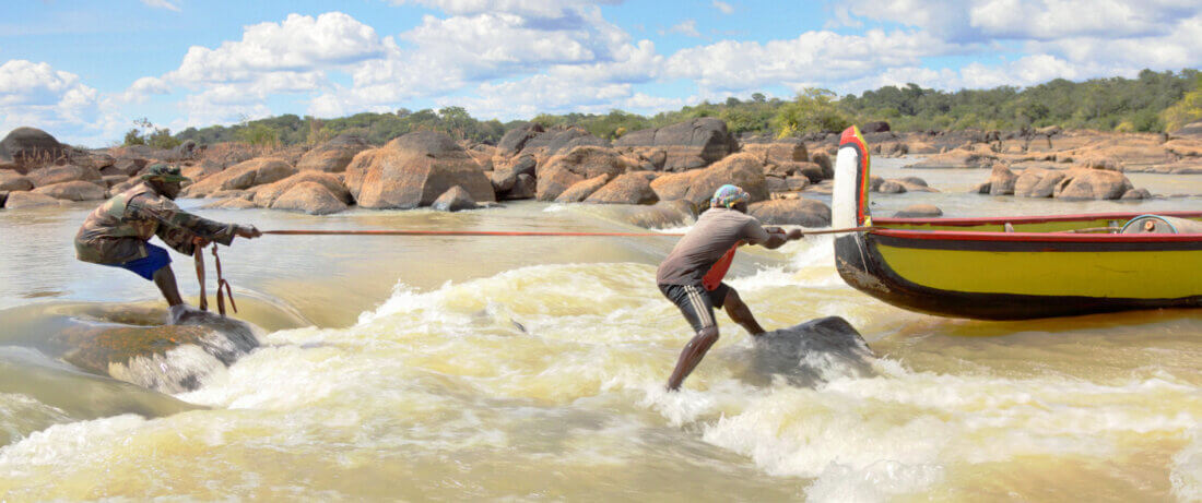 SdH: The film is set on the Guiana Shield of Amazonia, a two-billion-year-old stone plateau covered by rainforest, where a labyrinth of rivers like the Orinoco and the Amazon carve their paths. One of its winding rivers, the Maroni, provides the film with continuity, flow, and rhythm. Boogie leads the viewer through unknown and undefined territory, both physically with his boat, and by infusing the story with his own river of thoughts.